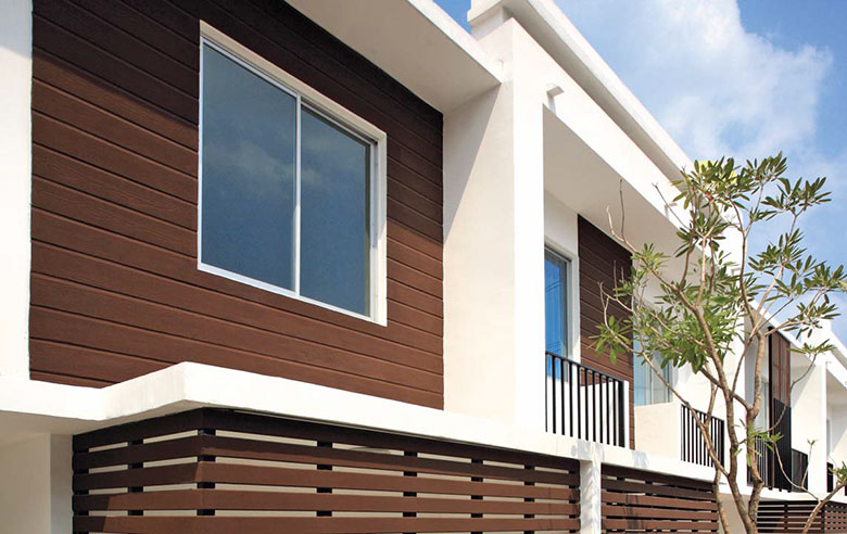 Fasad Bangunan: Menciptakan tampilan modern dan alami yang tahan cuaca.